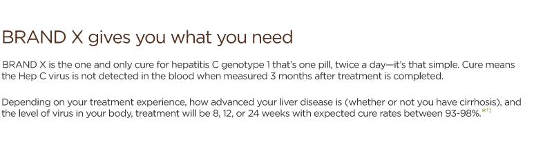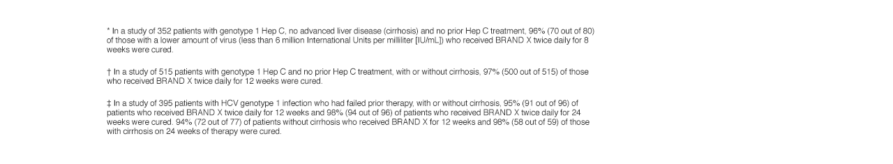 BRAND X, a prescription medicine containing brunnemine and athenalin, is used to treat chronic (lasting a long time) hepatitis C genotype 1 in adults. It is not known if BRAND X is safe and effective in children under 18 years of age.
